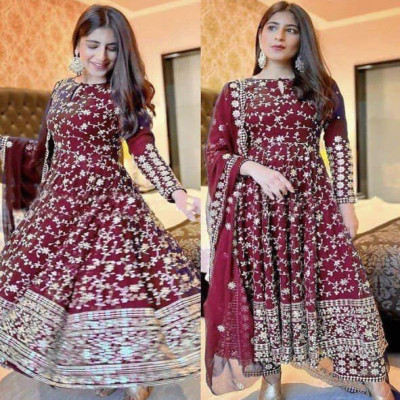ওড়না - ওয়েটলেস জর্জেট এমব্রয়ডারি কাজ করা